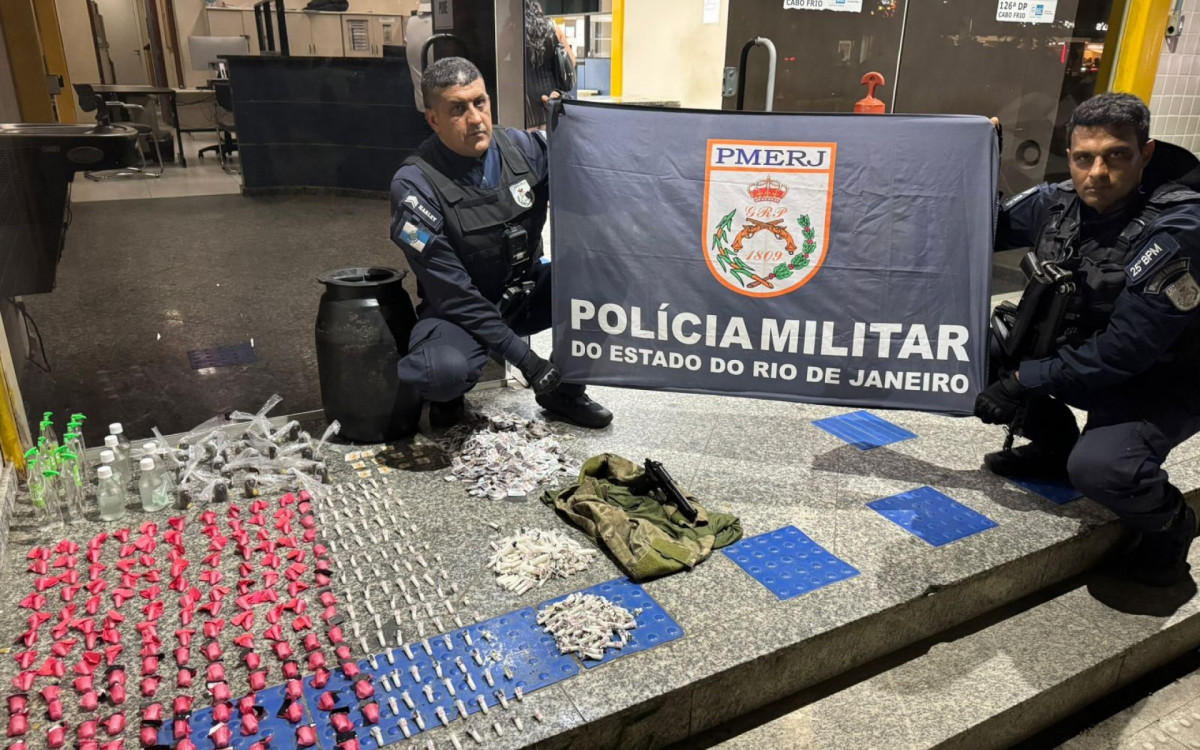 De acordo com a Polícia Militar, agentes do 25º BPM (Cabo Frio) chegaram ao material após denúncia anônima e localizaram os entorpecentes em uma área de mata. Além da cocaína e do crack, a ação também resultou na apreensão de ecstasy, haxixe, frascos de lança-perfume e rádios transmissores — itens que apontam para organização, comunicação e logística, não para um episódio isolado.