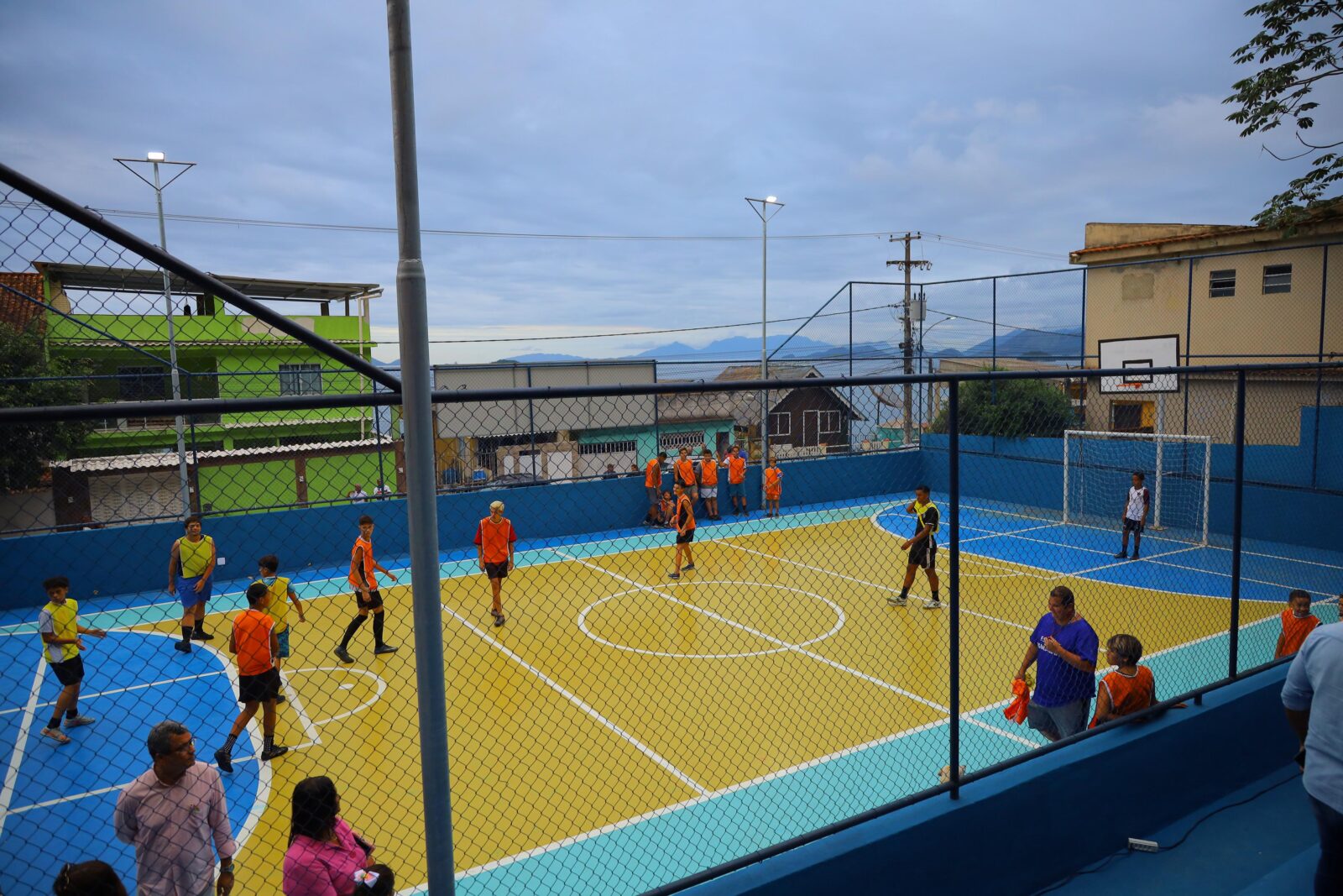 O local, com cerca de 300m², conta com quadra poliesportiva, arquibancada, parquinho, banheiros e área administrativa. O espaço está prontinho para a prática de esportes como basquete, futebol, handebol, vôlei e outros.