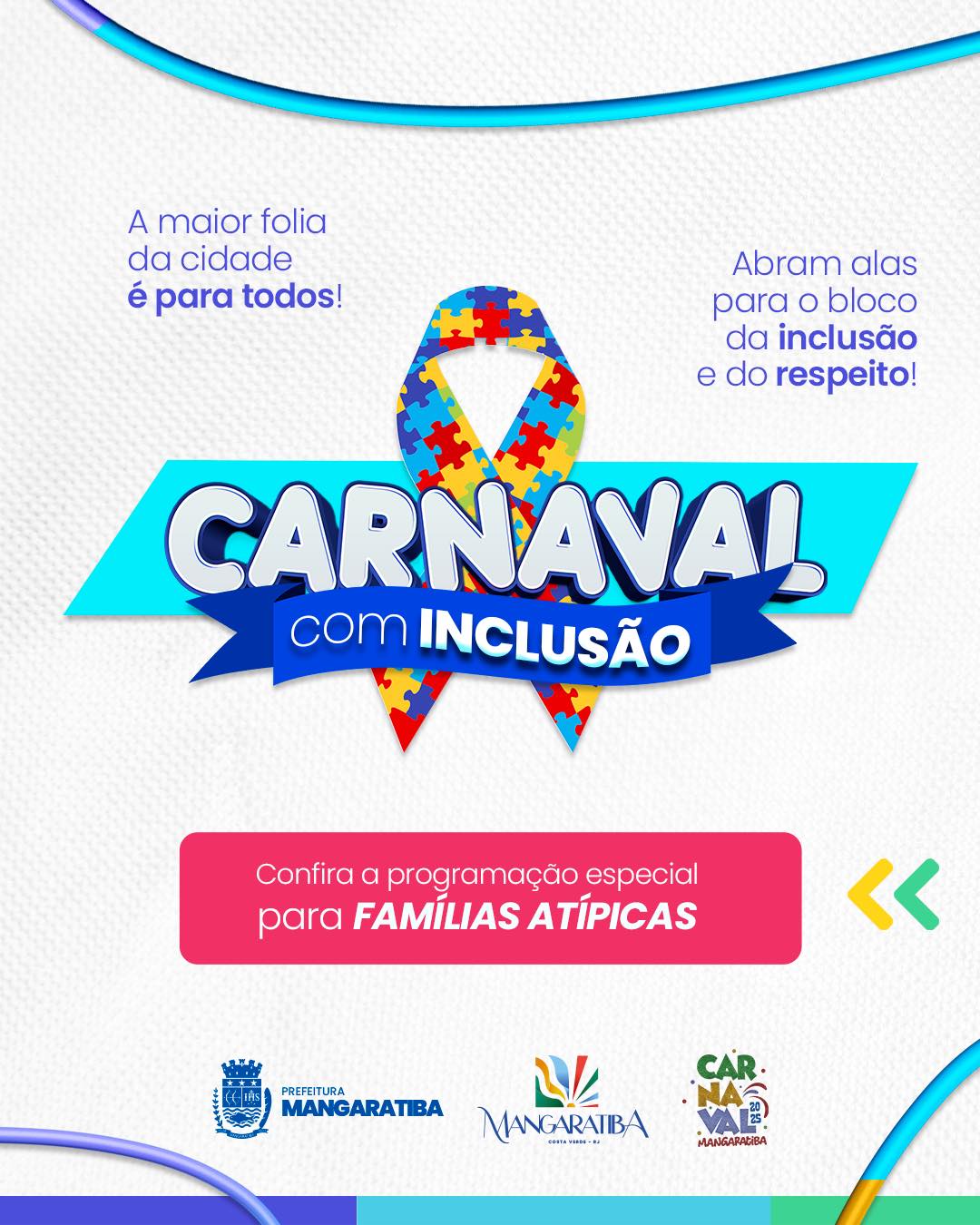 Carnaval completo é o carnaval para todos. E pensando nisso, a Prefeitura de Mangaratiba vai realizar de 01 a 04 de março o projeto inédito ‘Carnaval com Inclusão’. A iniciativa visa promover oficinas e acolhimento inclusivo para famílias atípicas durante os dias de folia.